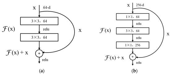 Structure diagram of the residual block. (a) Residual block in ResNet-18/34. (b) Bottleneck layer in ResNet-101/152.