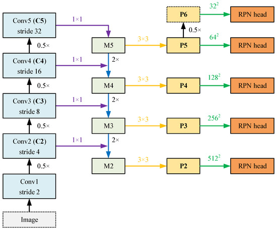 The output of the backbone is passed to the Region Proposal Network (RPN), and RPN detector heads are connected after each layer, as shown in Figure 5. Based on the extracted fused feature maps from ResNet, the RPN generates a set of variable-sized regions (called Regions of Interest (RoIs)) and rectangular bounding boxes.
