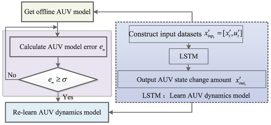 Figure 6 shows a detailed system model identification block diagram. Offline models can be obtained by offline training through real historical data. During the actual sailing, the system will regularly check the accuracy of the learned dynamics model. If the error is greater than pre-determined empirically and does not meet the requirements, the model will be retrained based on new real-time data.