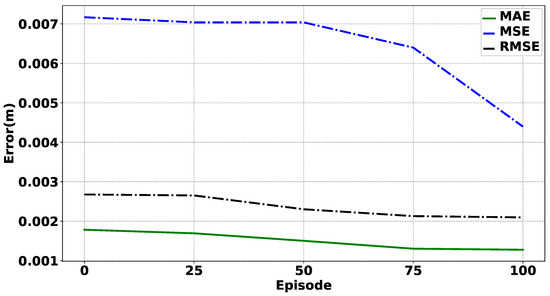 The actual data includes the sensor’s noise in the acquisition process, and it is more difficult to obtain an accurate model than the simulation. Therefore, the method performed 200 episodes. The experimental dataset is divided into training and testing sets, yielding a training set of 4000 and a test set of 990. From the loss curve of the LSTM neural network in the training process, this method has prominent learning characteristics, as shown in Figure 15.