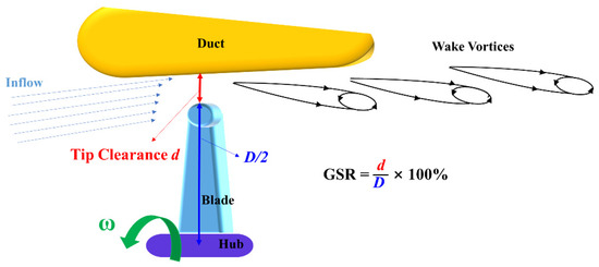 Furthermore, for ducted propellers and other pump machinery, there is a geometric parameter that has a significant influence on the flow field and performance: the tip clearance [6,7]. For a ducted propeller, the flow in its tip clearance area has a significant influence on the performance and the wake, resulting in a special flow phenomenon that is different from that of an ordinary open propeller.