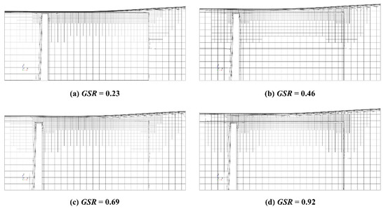 Side views of the meshes of propellers with different gap-to-span ratios (GSRs).