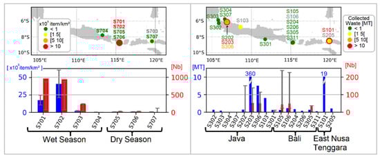 - Syakti, A.D.; Bouhroum, R.; Hidayati, N.V.; Koenawan, C.J.; Boulkamh, A.; Sulistyo, I.; Lebarillier, S.; Akhlus, S.; Doumenq, P.; Wong-Wah-Chung, P. Beach macro-litter monitoring and floating microplastic in a coastal area of Indonesia. Mar. Pollut. Bull. 2017, 122, 217–225. [Google Scholar] [CrossRef]