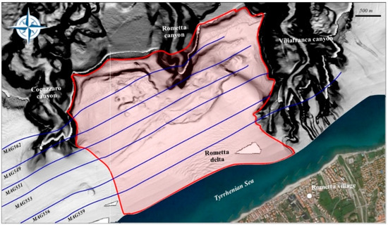 The northeastern Sicilian margin is dominated by canyons that in some cases have their heads in proximity to the coast (Corriolo, Niceto and Villafranca Canyon), and in other cases (Cocuzzaro and Rometta Canyon) at almost 3 km from the Sicilian coastline and, therefore, at a significant distance from the river mouths [2,3,26].