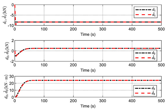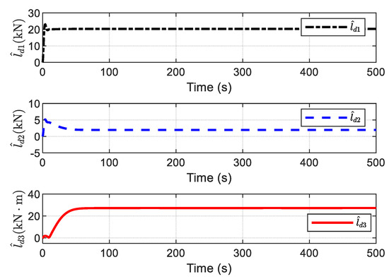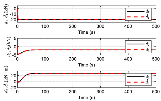 The estimation of disturbances, and the upper bound of the disturbances using the ADO, are given in Figure 22 and Figure 23, respectively. It is observed that the unknown varying-time disturbances can be accurately estimated by the ADO without readjusting its design parameters, and no prior information on the time-varying disturbances is required.