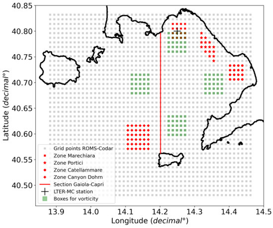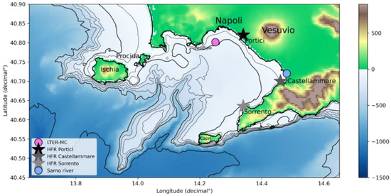 - Cianelli, D.; Falco, P.; Iermano, I.; Mozzillo, P.; Uttieri, M.; Buonocore, B.; Zambardino, G.; Zambianchi, E. Inshore/offshore water exchange in the Gulf of Naples. J. Mar. Syst. 2015, 145, 37–52. [Google Scholar] [CrossRef]
