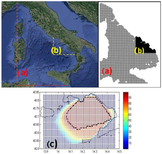 - de Ruggiero, P.; Esposito, G.; Napolitano, E.; Iacono, R.; Pierini, S.; Zambianchi, E. Modelling the marine circulation of the Campania coastal system (Tyrrhenian Sea) for the year 2016: Analysis of the dynamics. J. Mar. Syst. 2020, 210, 103388. [Google Scholar] [CrossRef]