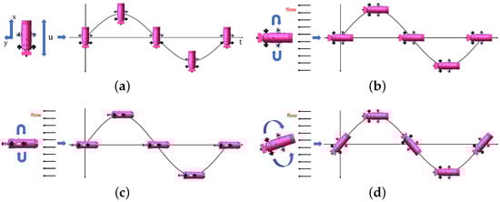 Figure 12b show the diagram of the pure sway motion of the underwater vehicle. The pure sway motion in the PMM test simulation is that the underwater vehicle oscillates in the y-direction and has a constant surge speed of . In the pure sway motion simulation, the motion of the underwater vehicle can be expressed as