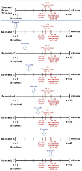 - Wang, H.; Mostafizi, A.; Cramer, L.A.; Cox, D.; Park, H. An agent-based model of a multimodal near-field tsunami evacuation: Decision-making and life safety. Transp. Res. Part C Emerg. Technol. 2016, 64, 86–100. [Google Scholar] [CrossRef]