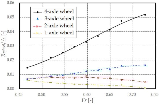In addition, the resistance increment coefficient K was used to represent the overall effect of the wheels. K includes the local effect and the global effect, and its definition is shown in Equation (7).