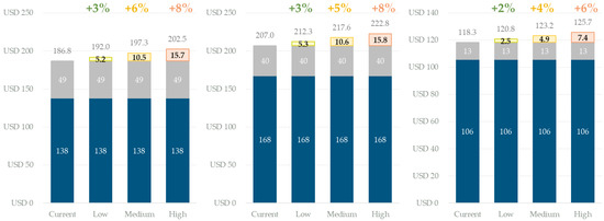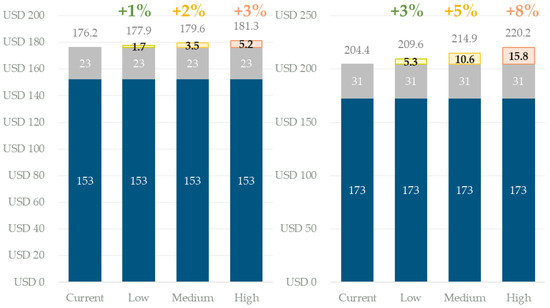 Figure 8 depicts our analysis of the cost of China’s iron ore imports following the adoption of the carbon tax in major iron ore exporters. In comparison, Australia would be the least affected, followed by India with a cost increase of 2–6%. The cost increase for iron ore imports from Brazil and South Africa ranges from 3% to 8%. Therefore, the implementation of the carbon tax would somewhat reduce the competitiveness of iron ore from Brazil and South Africa. China is likely to become more dependent on imports of iron ore from Australia and India.