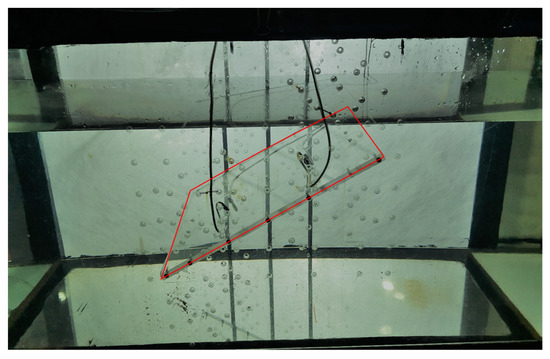 The inclined submerged plate in the experiment which is highlighted by the red line.