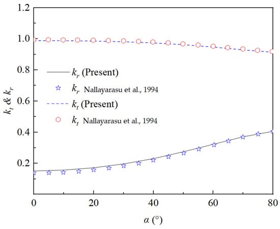 Variations of the transmission coefficient kt and the reflection coefficient kr with the inclination angle α [23].