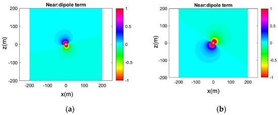 The same result concerning the acoustic field generated by the horizontal and vertical dipole source is presented in Figure 5 and Figure 6, respectively.