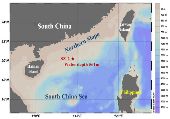 In this study, soil samples were taken from the Shenhu sea area in the north of the SCS based on the 2020 shared voyage of the SCS scientific research, as shown in Figure 1. Using a gravity sampler, the longitude and latitude of the sampling point were found to be 114.57 degrees east longitude and 20.27 degrees north latitude, the water depth of the sampling site was 561 m, and the sampling depth of the soil sampling was 4.85 m.