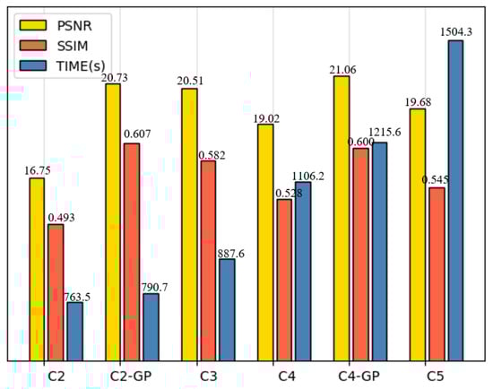 In addition to the subjective analysis, we also judge the quality of the generated images by calculating the peak signal-to-noise ratio (). The formula for calculating the of two images I and K [23] is