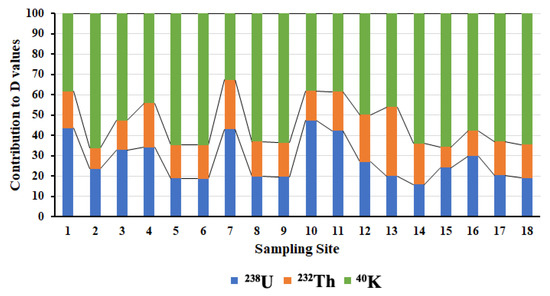 - Gad, A.; Saleh, A.; Khalifa, M. Assessment of natural radionuclides and related occupational risk in agricultural soil, southeastern Nile Delta, Egypt. Arab. J. Geosci. 2019, 12, 188. [Google Scholar] [CrossRef]