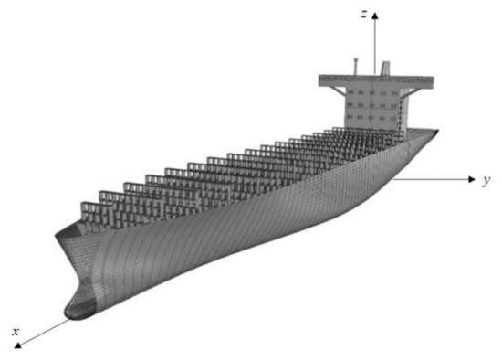 Iijima et al. [8] established a practical method of assessing the torsional strength of container ship structures (between 1500 and 8000 TEU capacity) by numerical analysis, obtaining the most damaging wave length at 120° with respect to the ship’s course. The interaction of loads in obtaining the ultimate strength is a fundamental concept used by Wang and Wang [9] in their research for application to a 10,000 TEU container ship from compartment model to global hull girder.