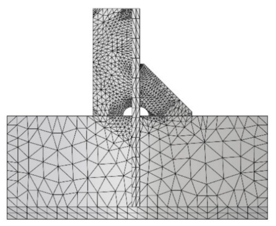 A two-stage numerical analysis is carried out; the first stage focuses on obtaining the degree of influence on the fatigue strength assessment of different structural details using a finite element technique and ANSYS® Workbench 2021 software following the same principles of Li et al. [19]. Hot spot stress has been adopted following the same procedure by Kim et al. [31]. The determination of these stresses due to fatigue loading is obtained through a 3D unstructured tetrahedral fine mesh stress analysis beyond 3D coarse mesh structural analysis based on the recommendations of Niemi [32], and obtaining a valid correlation between the numerical and experimental domains by comparing the results of this paper with the research of Fricke and Paetzold [22]. Figure 4 depicts the meshing pattern used in the case of the Detail No. 3 (Det3).