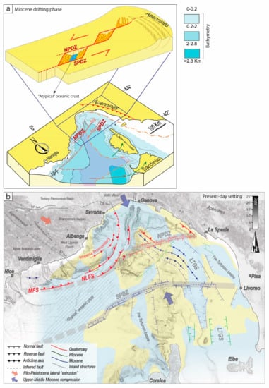 | Liguro−Provençal Basin drifting | Apennine folding and thrusting | |||||||||