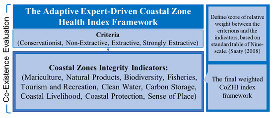 Every framework described above has a unique technique and limitations. The OHI framework limitation is the equal weight to each goal in evaluating the environment’s health. The paper on OHI did not capture the decision-makers’ perception in the study area. However, the coastal zone health index (CoZHI) framework in this study covered the limitation of the OHI framework. Part of the CoZHI framework is to include the policymakers’ and the local community’s perspectives. The OHI and CoZHI frameworks are similar in understanding the integrity of the coastal zone environment from the past until the present time. On the other hand, the CIVAT further extends the capability of the OHI and ICM frameworks by including the effects of climate change in the future on the coastal area.