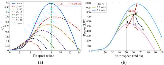 where is the intermediate variable. From Equation (13) and Figure 2, it can be found that a slight deviation of rotor speed leads to a lag delay of the output power . However, the conventional pitch controller relays on the accurate TST system model, which presents parameter uncertainties in harsh working conditions as Equation (12). The actual pitch angle reference can be represented as:
