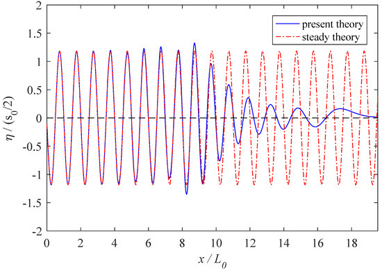 The associated free surface elevation can be calculated from Equation (27) by using the Bernoulli’s equation and can be expressed as