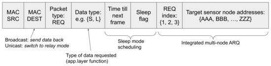 - REQ index & Target sensor node addresses—these fields are used to provide multi-node ARQ functionality, as described in Section 2.6.