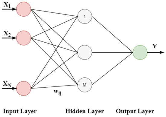 where is the output of the node , is the input to the node, is the connection weight between the and nodes and is the threshold or else bias of the node. The activation function is usually nonlinear, such as the sigmoid, Heaviside or Gaussian functions. Through this process, a set of inputs is transformed to a set of desired outputs. To obtain the desired output, the weights are adjusted through the learning via examples [37,38].