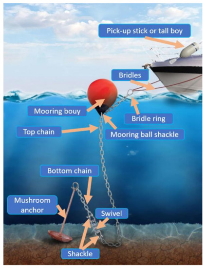 - Two C’s Marine. Moorings 101. 2020. Available online: https://www.twocsmarine.com/moorings-101/ (accessed on 12 August 2021).