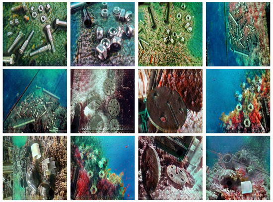 Figure 4 illustrates some of the image results that were achieved by employing DL data augmentation. It is evident that these images are far more accurate representations of the subsea environment than the initial data augmentation described in the results section when performing model evaluation with the FID technique. The model requires more optimisation, since in some of the photographs, it might be challenging to identify the individual objects that are there.