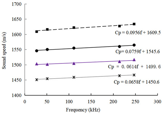 Williams et al. [1] believed that the grain modulus and porosity affect the sound speed dispersion over the frequency range, the permeability affects the sound speed dispersion in the middle frequency range from 10 kHz to 50 kHz, and the tortuosity affects the sound speed dispersion in the high frequency above 50 kHz. For our measurement frequency range, the four factors are all related with our measurement results, and the dispersion degree is a comprehensive reflection of these parameters. Figure 3 also shows that for silty clay, clayey silt, silt, and silty sand, the dispersion characteristics of these four sediments are basically consistent.