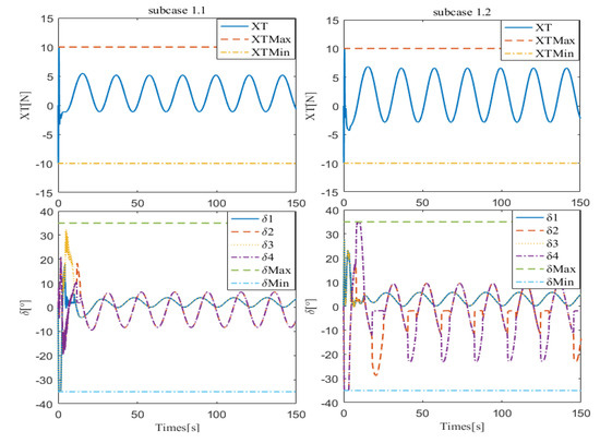 Control inputs of subcases 1.1 and 1.2.