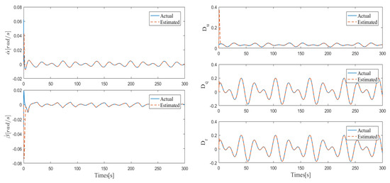 Compared with the general controller, another advantage of the proposed controller is the fast disturbance-handling ability. As shown in Figure 13, for multiple complex unknown disturbances contained in the model, the FTEDOs can quickly realize high-precision disturbance estimation. In particular, the fast and high-precision estimation of and makes the controller more practical.