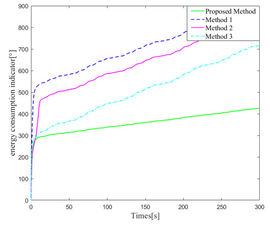 In addition, the proposed control algorithm has great advantages in dealing with the complex dynamics of the actuators, which can be proven by Figure 14 and Figure 15. It is easily seen from Figure 14 that with the help of the RBFNN compensator and optimal rudder allocator, the input saturation problem of propeller and X-rudder has been properly solved. More importantly, it can be seen from Figure 15 that the optimal rudder allocator designed in this paper has obvious advantages in energy consumption when compared with three other control methods.