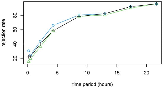 The above mentioned tests are at nominal level again this type of alternatives. For this, it is used here the random projection test [], which test the Gaussianity of the whole distribution of the process and not just of a finite dimensional marginal. For elaboration on it, see Section 3.2.