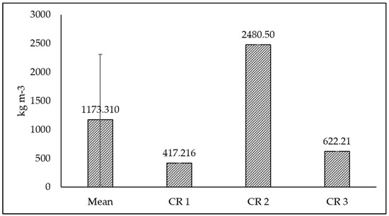 Figure 9 shows the calculated total fish biomass from the three BK AR units. There was uneven range of fish biomass among the three BK AR units with a value range of 471.22–2480.50 kg m−3 and a mean value of 1173.31 ± 1136.69 kg m−3. In particular, the difference in fish biomass in CR 2 was associated with the bigeye snapper (Lutjanus lutjanus) (Table 4). Nevertheless, regal demoiselle (Neopomacentrus cyanomos) were found in all observed BK AR units with higher biomasses in CR1 and CR3. Apart from these two species, other fishes contributed less than 30 kg m−3 of biomass.
