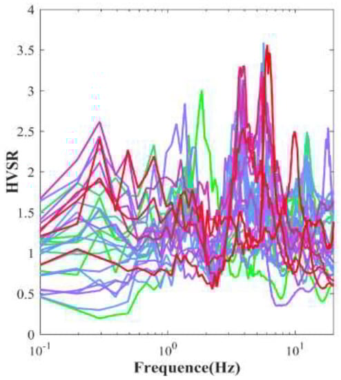 HVSR curves for all stations. Different colors represent different HVSR curves for different stations.