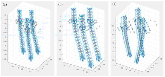 The procedures to determine the structural properties are shown in Figure 4. Axial load , bending moment , and shear load F are separately and sequentially applied to the free end of a single truss leg and the equivalent homogenous cantilever beam in order to derive the structural properties, namely the equivalent sectional area , second axial moment of area about , and , and shear area . The structural properties for the equivalent beams are determined such that the deformation of the cantilever is the same as that of the truss legs. A summary of the beam properties is presented in Table 2.