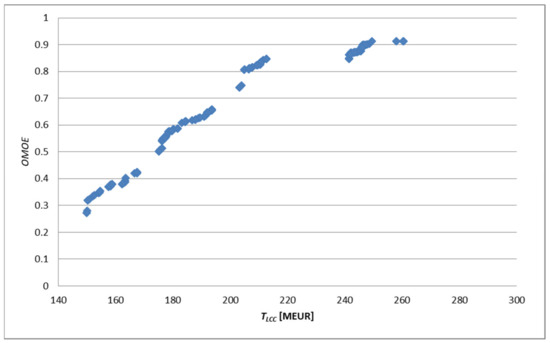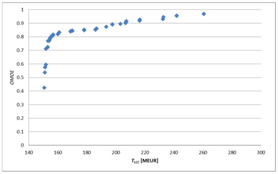 One preferred solution having comparable TLCC is selected from each Pareto front, as shown in Table 4.