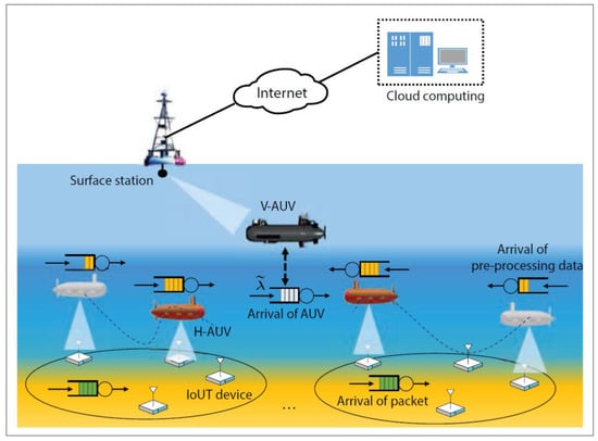 - Qin, C.; Du, J.; Wang, J.; Ren, Y. A hierarchical information acquisition system for AUV assisted internet of underwater things. IEEE Access 2020, 8, 176089–176100. [Google Scholar] [CrossRef]