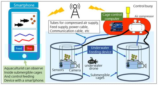 - Fukae, K.; Imai, T.; Yamabe, S.; Arai, K.; Kobayashi, T. Development of Observation Device with Multi Sensor Platform for Underwater Aquaculture Cages. In Proceedings of the 2021 IEEE 45th Annual Computers, Software, and Applications Conference (COMPSAC), Madrid, Spain, 12–16 July 2021; pp. 1633–1638. [Google Scholar]