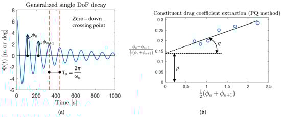 The constituent linear and quadratic drag coefficients with dimension were then extracted using the consecutive crest amplitude values ( , and so on) from the free decay tests using both the PQ and Faltinsen’s methods [26,29].