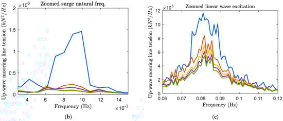 - Additional linear stiffness ( in N/m) in surge and sway were included to account for the influence of measurement cable bundle using the generic force addition term [42,44].