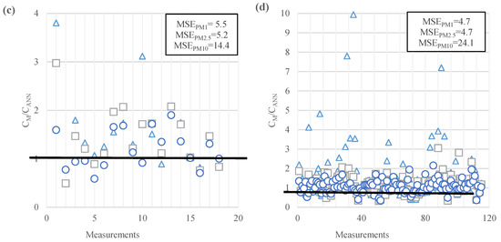 Modeling results showed a good correlation with measurement data for the whole data array R2 = 0.903 for PM1, R2 = 0.880 for PM2.5, and R2 = 0.807 for PM10, respectively. The mean squared error for testing samples was 0.123.