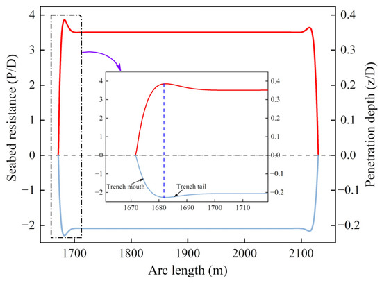 Distribution of seabed resistance and developed seabed trench.