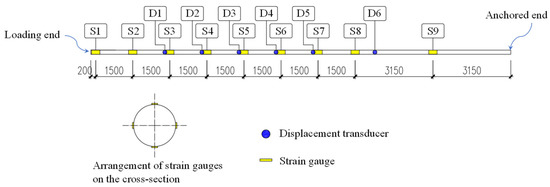 Arrangement of strain gauges and displacement transducers.