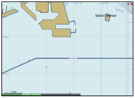 Smooth-RRT and JPS are widely used path-planning methods. Figure 9 and Figure 10 illustrate the plans they generate for the same problem; evaluation metrics are summarized in Table 1 for comparison. The three algorithms were executed using the same devices, so the comparison reflected their complexity. It can be concluded that the proposed method is much faster than smooth-RRT and is close to the speed of JPS (grid size 10 m). JPS is the fastest method, but the constraints are not satisfied. Notably, JPS can only find paths on regular grid maps, and the nodes or edges on the map cannot be weighted. As a result, the path is next to the seashore and increases the risk of collision. Compared to JPS, the route obtained by the proposed method is a bit longer, but it is completely within the safety margin. Expansions are the nodes checked during path planning, and the amount of them directly effects the speed of path planning. Multi-scale A* only uses 12.4% of the nodes used in smooth-RRT. JPS uses 3.8% of the nodes of smooth-RRT, but the constraints are not satisfied.