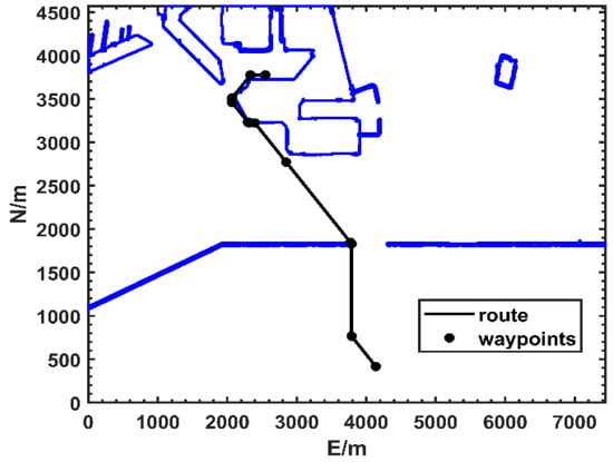 Commonly used planning methods are the line-of-sight (LOS) method [1], dynamic virtual ship (DVS) method [2,3], and coordinate transformation method [4,5]. They deal with local planning to avoid collisions and provide motion guidance. Generally, local planning is based on a pre-designed global path, derived using methods such as A*, RRT*, and ant colony algorithms. Besides finding a path, the satisfaction of constraints including smoothness and other limitations are also important for path or trajectory planning. In [6], an improved A* algorithm was proposed for USVs to solve map resolution constraints and increase the path smoothness. Reference [7] increased the number of neighboring nodes in an A* algorithm so that smoothness was improved. These research papers explored the configuration of the A* algorithm, but their computational load was relatively heavy. More commonly adopted methods are other variants of the A* algorithm such as the Theta* algorithm [8] or JPS algorithm [9]. Their searching speed is much faster. Reference [10] proposes a hybrid A* algorithm, which allows a continuous state association between grids and guarantees the feasibility of path tracking. In [11] and [12], a smooth-RRT* and an ant colony algorithm were used. The two methods introduced random searching in the scheme, which were efficient for general situations, but unsuitable for areas with narrow connections, such as dumbbell-shaped areas.
