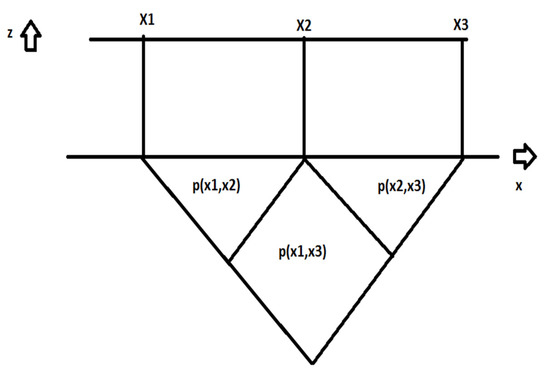 If now a two-compartment damage is to be considered with transversal bulkheads located at x1, x2, and x3, the probability pi,2 for a damage which opens only the two compartments (and not a single compartment) is to be calculated as follows (see Figure 1):